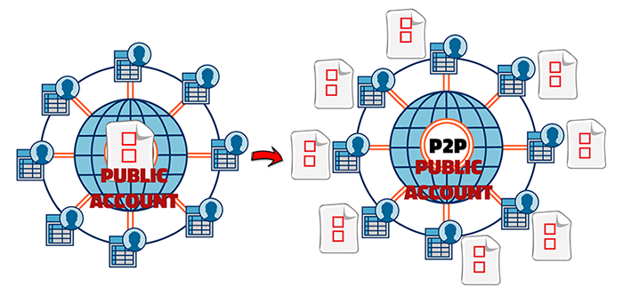 As you can see, in reality everyone has a copy of the public account, we already said that a peer to peer program allows transfers from PC to PC, therefore, in the universe of bitcoins, the public account is the one that is transferred, or rather, the blocks of the blockchain. Which block you will copy depends on how you filter the fake ones. For example, if Bob alters his copy of the public account, then he will change by default the hash of the block, and if you see that there are 10,000 users that have identical blocks and the hashes are totally different from Bob's, then you can intuitively guess that Bob has a fake information and you won't pay attention to him. For Bob to succeed he must control more than 50% of the miners' accounts, something that is likely impossible to happen because of the big quantity of players that Bitcoin has. For this reason, the transaction history is protected thanks to the concept of the blockchain.
