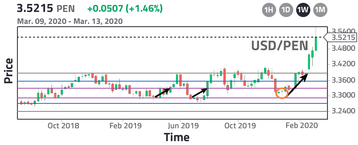 Afternote: The dollar fell to 3.35 PEN on April 08th and 23rd, 2020.
