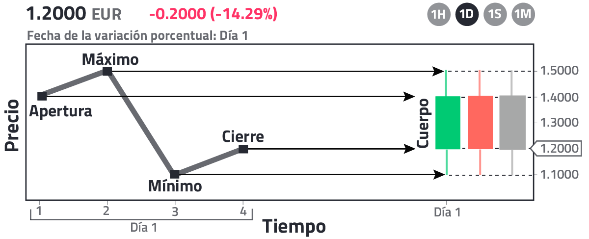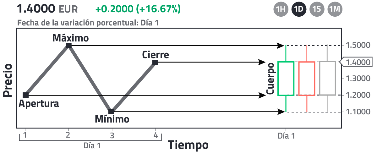 Con esta información ya estás preparado para comprender las gráficas de velas, sean de dos o seis colores, lo demás llegará con la experiencia.