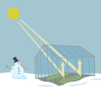 El efecto de los gases de efecto invernadero GHG funciona de la misma manera que los invernaderos. Los invernaderos se construyen especialmente en lugares con malas condiciones para el crecimiento de las plantas, normalmente en lugares helados o donde los rayos del Sol son insuficientes. Se construyen con techos y ventanas de cristal para que los rayos del Sol queden atrapados en el interior de la casa y así mantenerla más caliente en invierno o por la noche. La Fig. 2.1.1 muestra el funcionamiento de un invernadero.