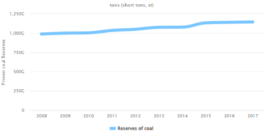 La Fig. 2.3.3.1. muestra las reservas mundiales de carbón a lo largo del tiempo hasta 2017.