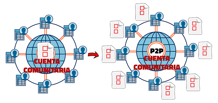Como puedes ver, en realidad todos tienen su propia copia de la cuenta comunitaria, ya dijimos que un programa Peer to Peer permite transferencias de PC a PC, por tanto, en el universo de los bitcoins, se transfieren estas cuentas comunitarias, o mejor dicho, se transfieren los bloques de dichas cuentas, y la elección de cual aceptar en tu PC estará sujeta a cual consideras que tiene mayor validez. Por ejemplo, si Bob altera su cuenta comunitaria, cambiará el hash de sus bloques, y si tú observas que hay otras 1000 personas que tienen un hash distinto al de Bob y son iguales, entonces necesariamente estarás convencido que la cuenta comunitaria de Bob es incorrecta y no le prestarás atención. Bob, solo depende de que alguien acepte copiar su cuenta, lamentablemente nunca tendrá éxito a menos que más del 50% de jugadores sean sus amigos, algo que será imposible de alcanzar por la cantidad de jugadores en línea que hay. Por esta razón, el historial de transacciones está protegido gracias al concepto de la blockchain.