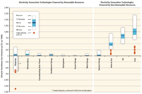 Para tener una idea de cuán dañinos son los combustibles fósiles para los seres vivos del planeta, en la Fig. 4.3.1., se muestra una comparación de las emisiones de CO2 entre energías renovables (como la geotérmica, hidroeléctrica) y fósiles (como el petróleo, el gas natural ) se muestra.