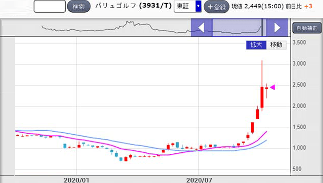 Fig. 2: Precio vs tiempo de Value Golf en una plataforma japonesa.