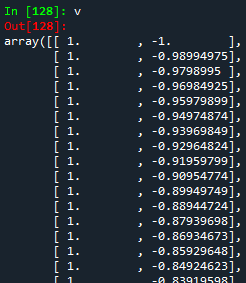 Tener en cuenta que la matriz de Vandermonde tiene dimensiones $nx2$ ($n$ filas y 2 columnas). En Python, lo construiremos de la siguiente manera: