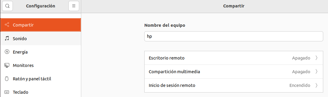 Para verificar que la instalación fue correcta accede a Configuración. En Compartir, el Inicio de sesión remoto debe estar Encendido, ver Fig. 2:
