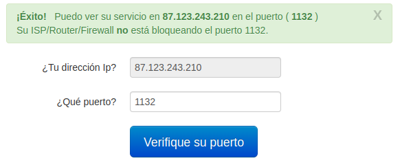 Si no obtienes el mensaje de éxito, posiblemente un firewall está impidiendo el acceso.